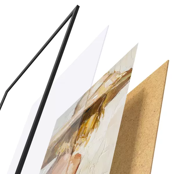 Plakāts sastāv no rāmja, pleksstikla, iespiestā attēla un skaidu plātnes pamatnes. Plakātu var uzreiz piekarināt pie sienas, pateicoties aizmugurē esošajiem stiprinājumiem.