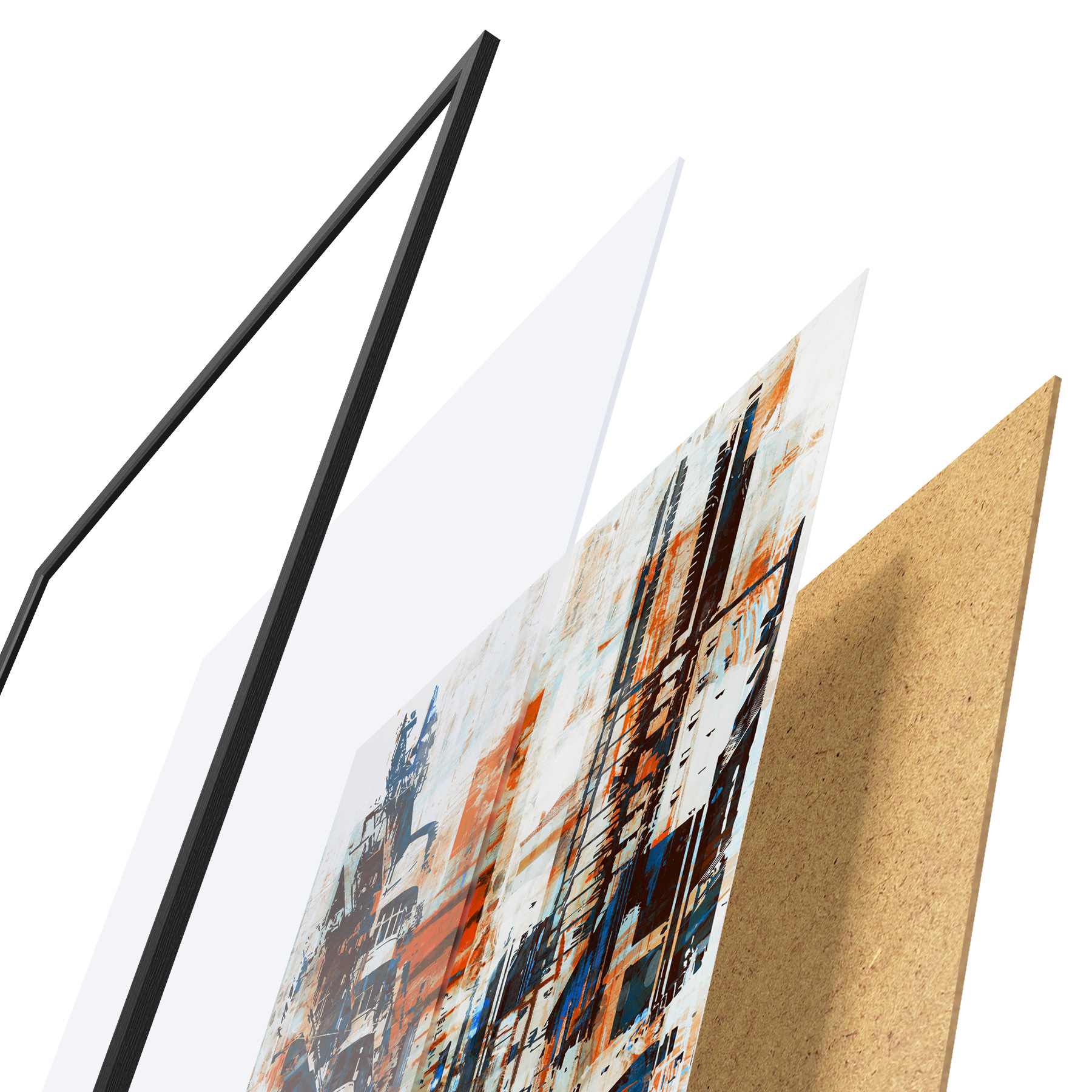Plakāts sastāv no rāmja, pleksstikla, iespiestā attēla un skaidu plātnes pamatnes. Plakātu var uzreiz piekarināt pie sienas, pateicoties aizmugurē esošajiem stiprinājumiem.