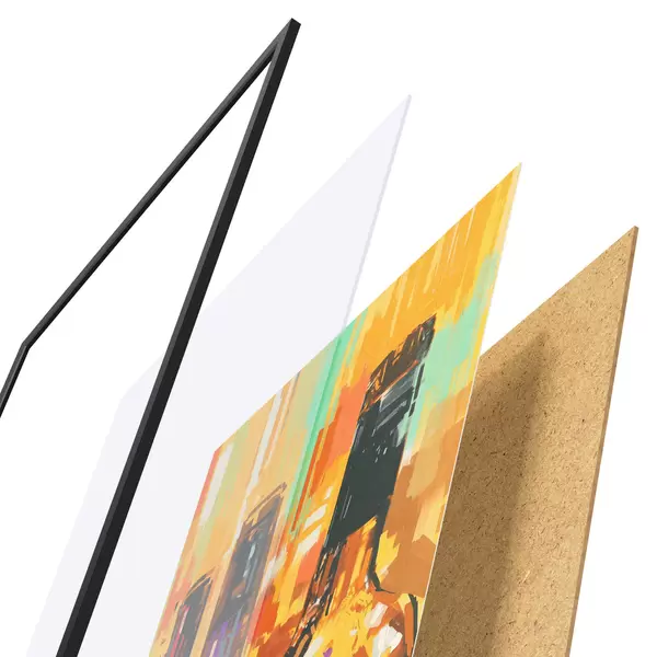 Plakāts sastāv no rāmja, pleksstikla, iespiestā attēla un skaidu plātnes pamatnes. Plakātu var uzreiz piekarināt pie sienas, pateicoties aizmugurē esošajiem stiprinājumiem.