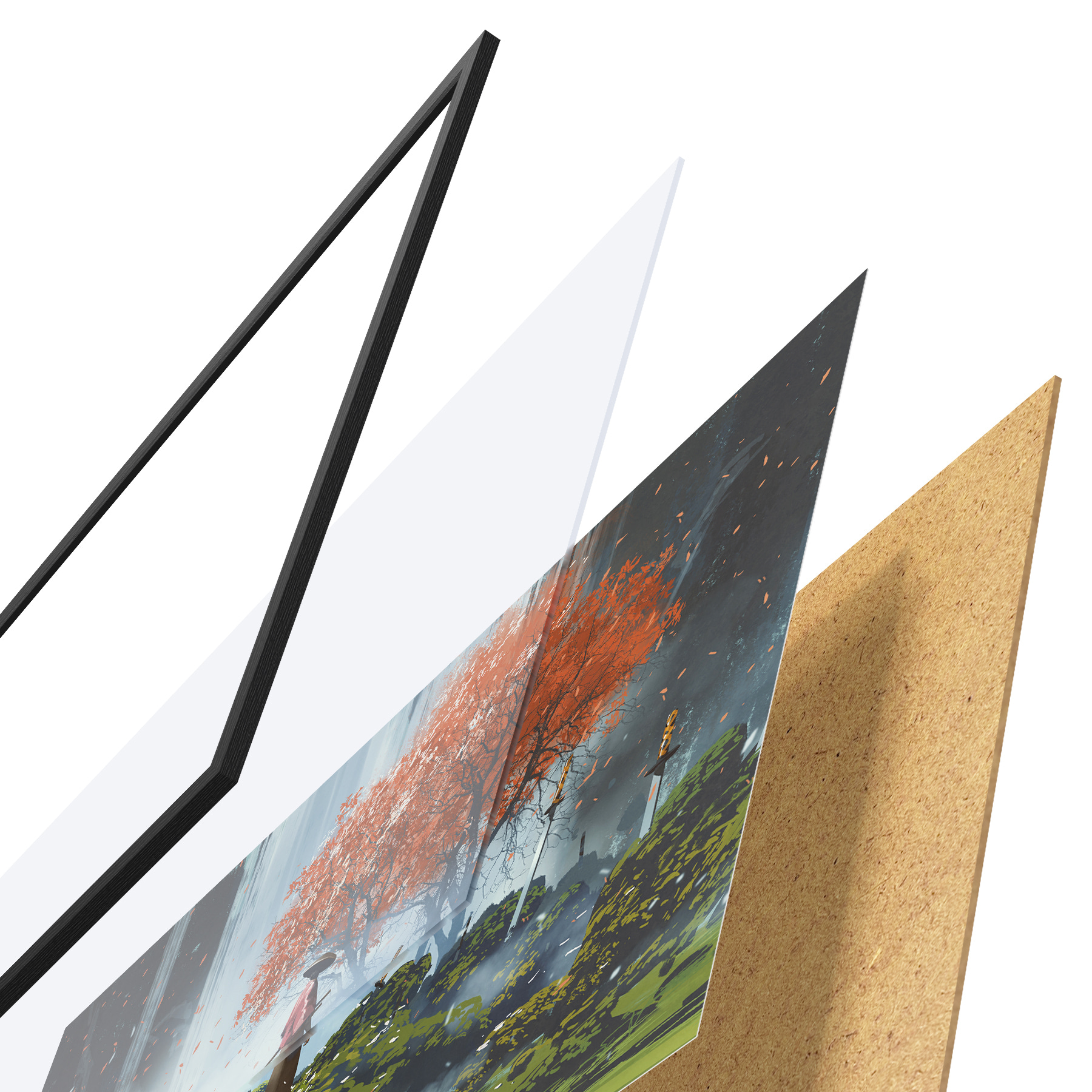 Plakāts sastāv no rāmja, pleksstikla, iespiestā attēla un skaidu plātnes pamatnes. Plakātu var uzreiz piekarināt pie sienas, pateicoties aizmugurē esošajiem stiprinājumiem.