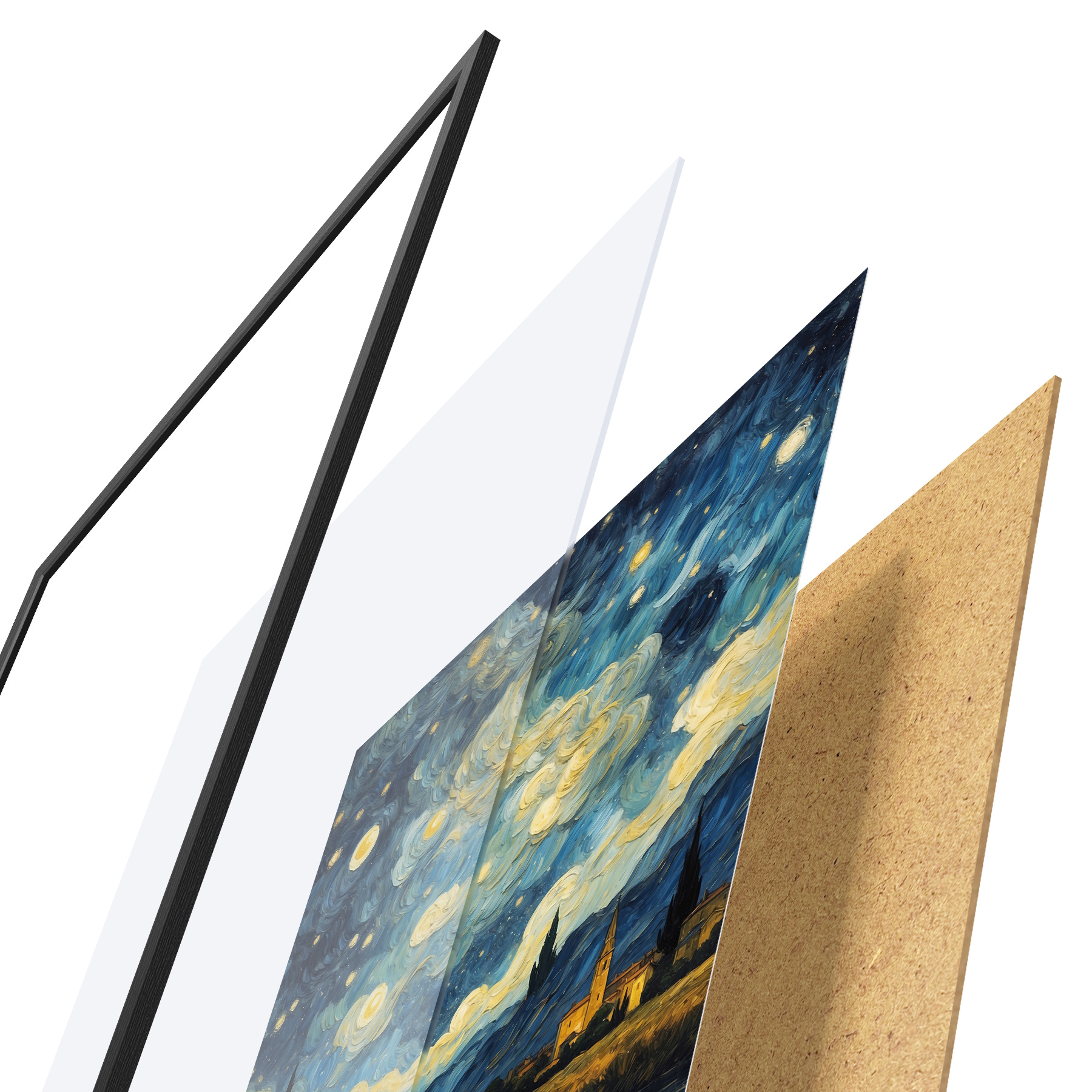 Plakāts sastāv no rāmja, pleksstikla, iespiestā attēla un skaidu plātnes pamatnes. Plakātu var uzreiz piekarināt pie sienas, pateicoties aizmugurē esošajiem stiprinājumiem.