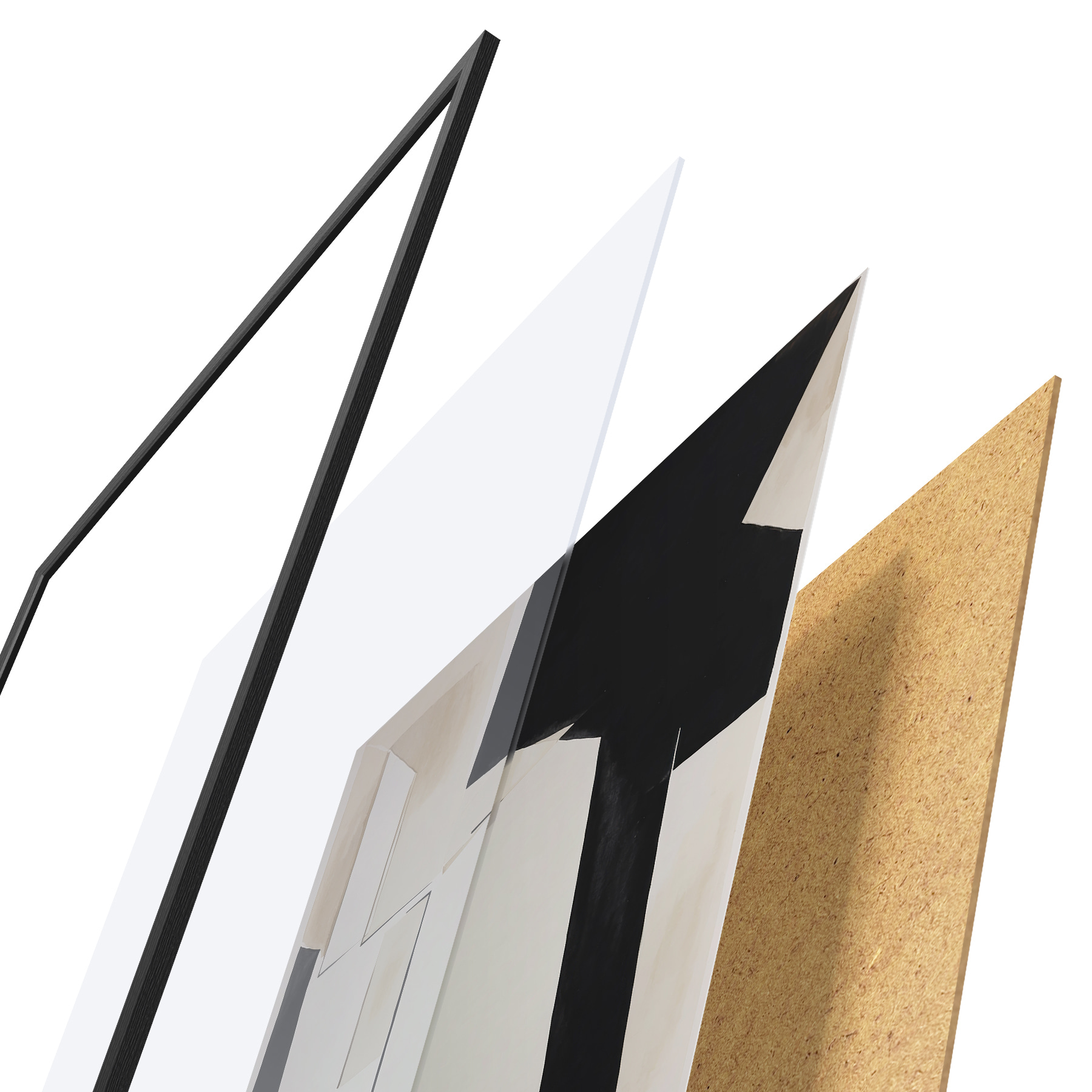 Plakāts sastāv no rāmja, pleksstikla, iespiestā attēla un skaidu plātnes pamatnes. Plakātu var uzreiz piekarināt pie sienas, pateicoties aizmugurē esošajiem stiprinājumiem.