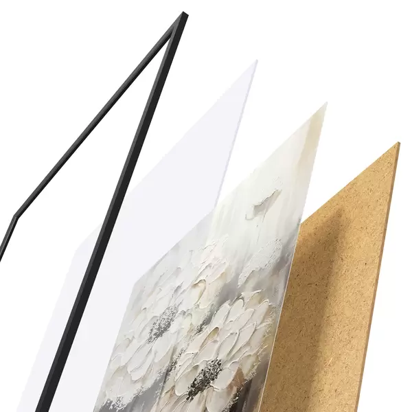 Plakāts sastāv no rāmja, pleksstikla, iespiestā attēla un skaidu plātnes pamatnes. Plakātu var uzreiz piekarināt pie sienas, pateicoties aizmugurē esošajiem stiprinājumiem.