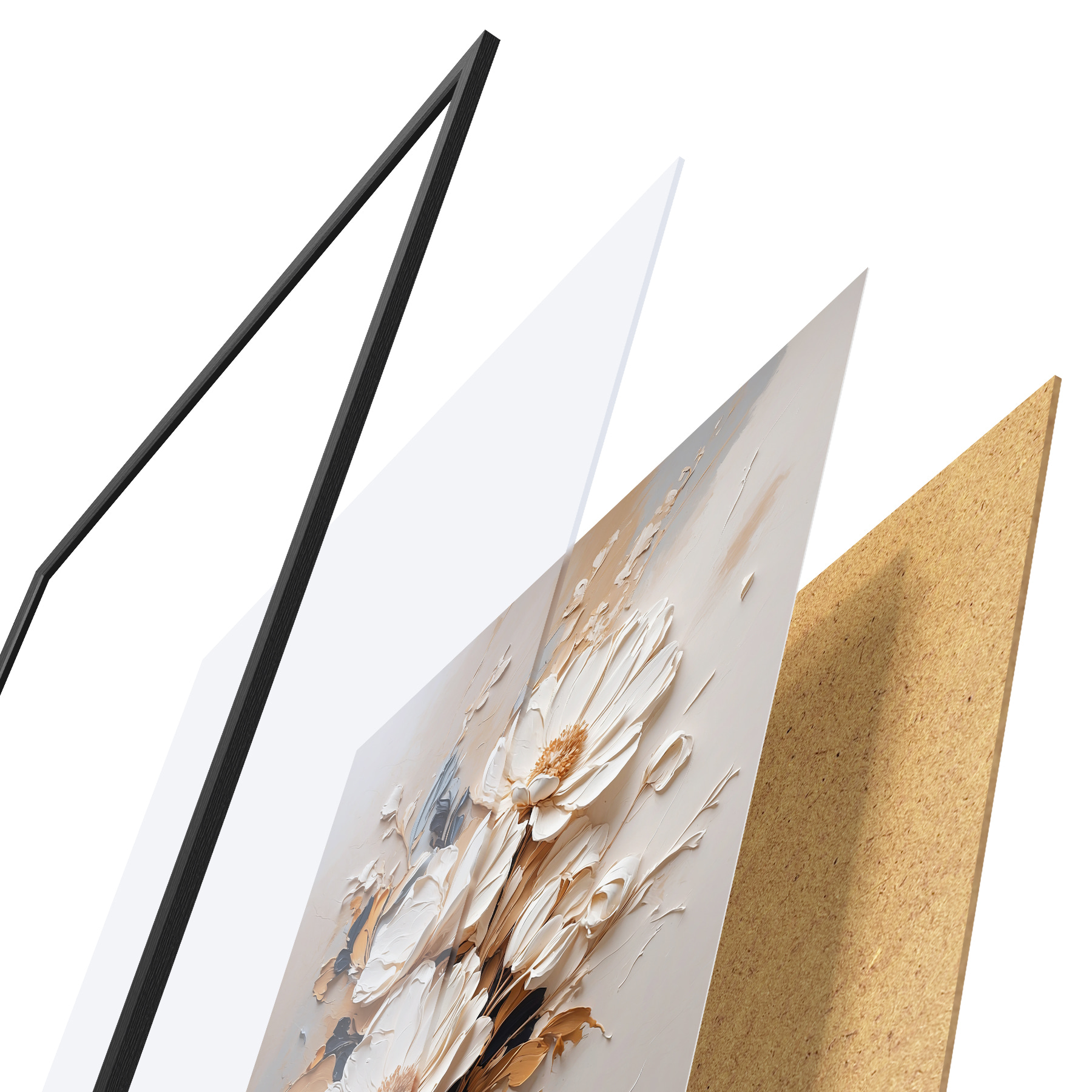 Plakāts sastāv no rāmja, pleksstikla, iespiestā attēla un skaidu plātnes pamatnes. Plakātu var uzreiz piekarināt pie sienas, pateicoties aizmugurē esošajiem stiprinājumiem.