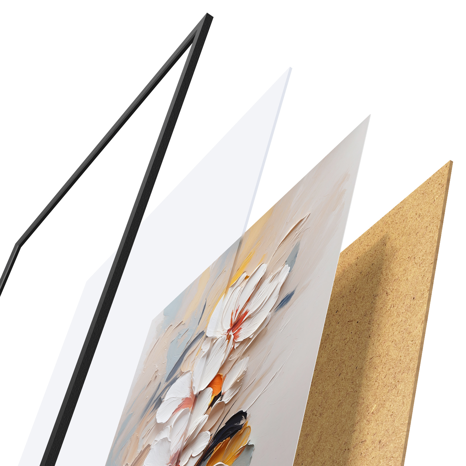 Plakāts sastāv no rāmja, pleksstikla, iespiestā attēla un skaidu plātnes pamatnes. Plakātu var uzreiz piekarināt pie sienas, pateicoties aizmugurē esošajiem stiprinājumiem.