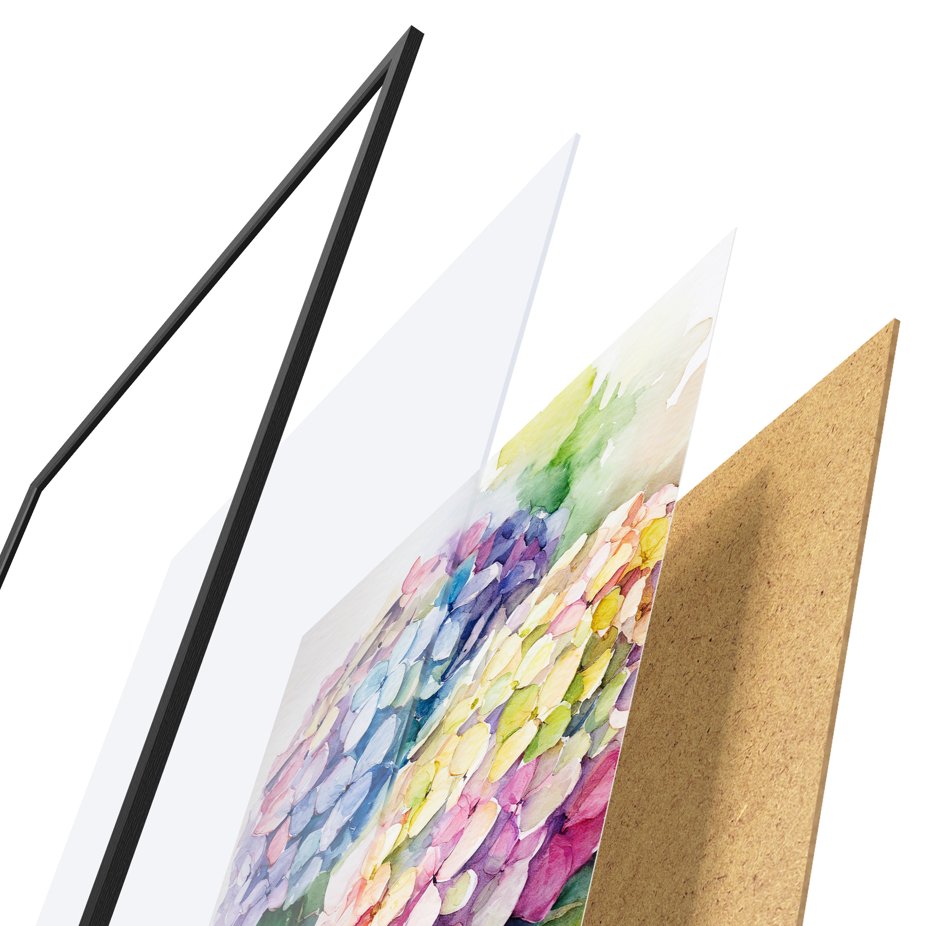 Plakāts sastāv no rāmja, pleksstikla, iespiestā attēla un skaidu plātnes pamatnes. Plakātu var uzreiz piekarināt pie sienas, pateicoties aizmugurē esošajiem stiprinājumiem.