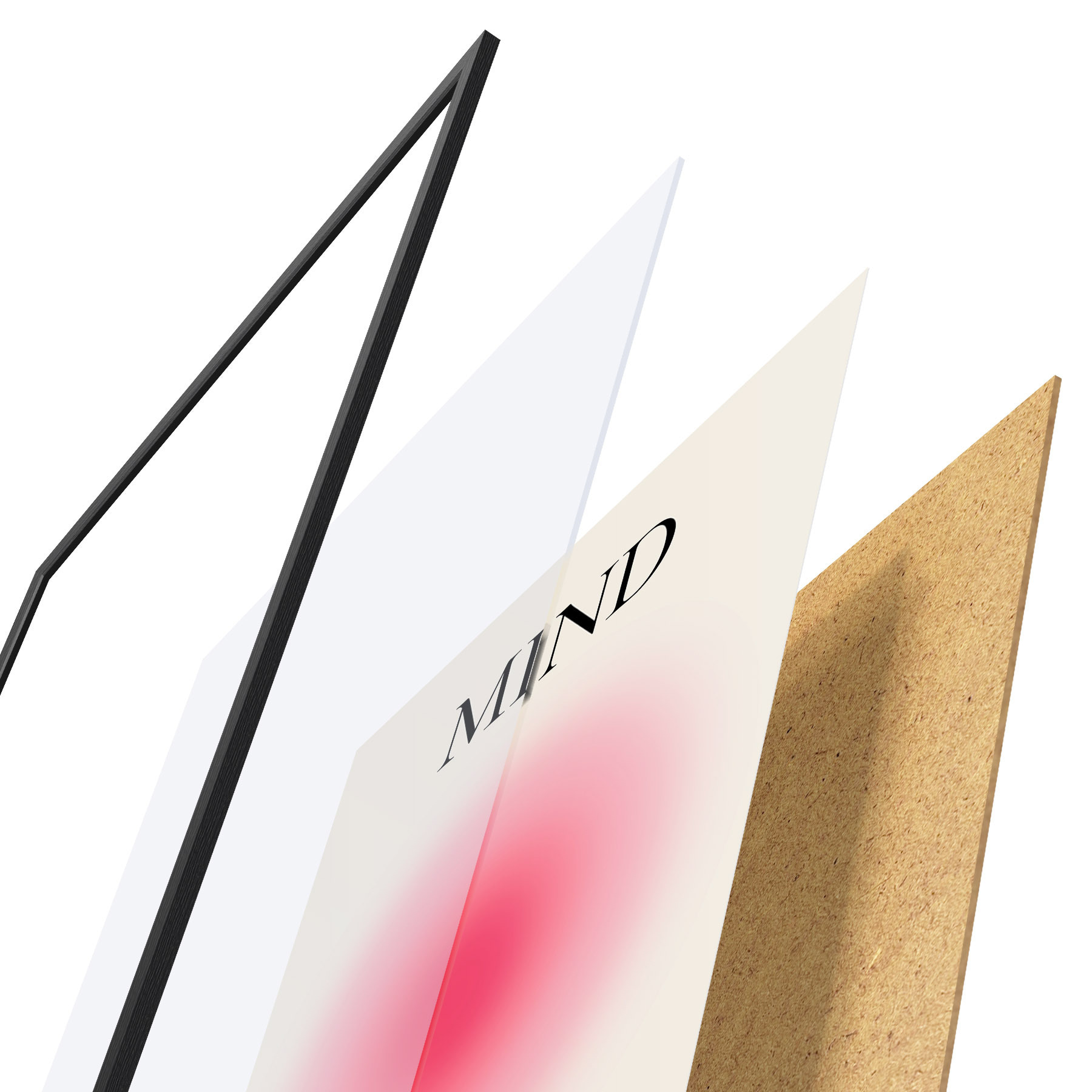 Plakāts sastāv no rāmja, pleksstikla, iespiestā attēla un skaidu plātnes pamatnes. Plakātu var uzreiz piekarināt pie sienas, pateicoties aizmugurē esošajiem stiprinājumiem.