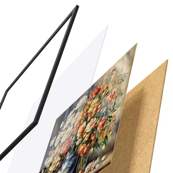 Plakāts sastāv no rāmja, pleksstikla, iespiestā attēla un skaidu plātnes pamatnes. Plakātu var uzreiz piekarināt pie sienas, pateicoties aizmugurē esošajiem stiprinājumiem.
