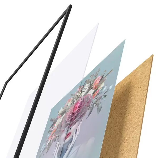 Plakāts sastāv no rāmja, pleksstikla, iespiestā attēla un skaidu plātnes pamatnes. Plakātu var uzreiz piekarināt pie sienas, pateicoties aizmugurē esošajiem stiprinājumiem.