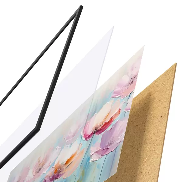 Plakāts sastāv no rāmja, pleksstikla, iespiestā attēla un skaidu plātnes pamatnes. Plakātu var uzreiz piekarināt pie sienas, pateicoties aizmugurē esošajiem stiprinājumiem.