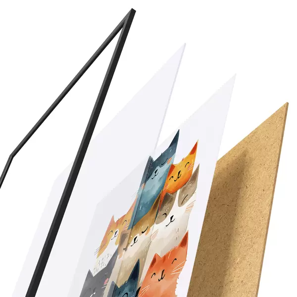 Plakāts sastāv no rāmja, pleksstikla, iespiestā attēla un skaidu plātnes pamatnes. Plakātu var uzreiz piekarināt pie sienas, pateicoties aizmugurē esošajiem stiprinājumiem.
