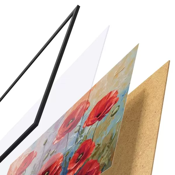 Plakāts sastāv no rāmja, pleksstikla, iespiestā attēla un skaidu plātnes pamatnes. Plakātu var uzreiz piekarināt pie sienas, pateicoties aizmugurē esošajiem stiprinājumiem.
