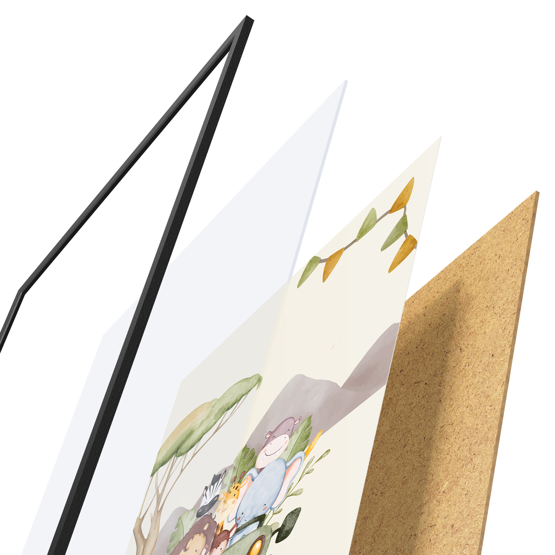 Plakāts sastāv no rāmja, pleksstikla, iespiestā attēla un skaidu plātnes pamatnes. Plakātu var uzreiz piekarināt pie sienas, pateicoties aizmugurē esošajiem stiprinājumiem.