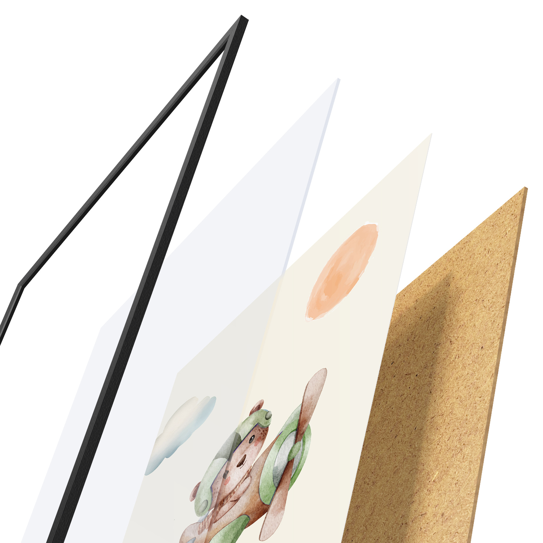 Plakāts sastāv no rāmja, pleksstikla, iespiestā attēla un skaidu plātnes pamatnes. Plakātu var uzreiz piekarināt pie sienas, pateicoties aizmugurē esošajiem stiprinājumiem.