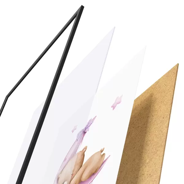 Plakāts sastāv no rāmja, pleksstikla, iespiestā attēla un skaidu plātnes pamatnes. Plakātu var uzreiz piekarināt pie sienas, pateicoties aizmugurē esošajiem stiprinājumiem.