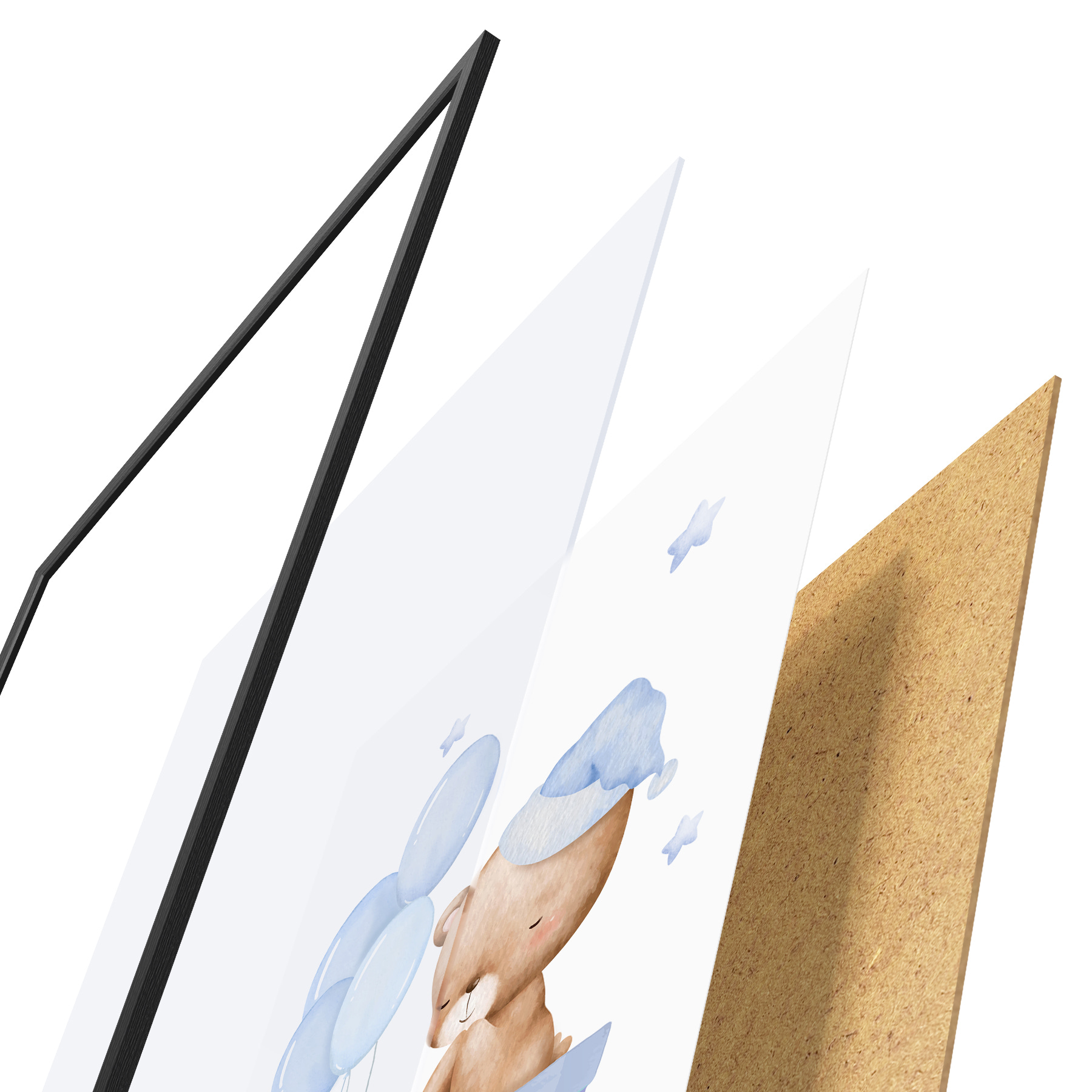 Plakāts sastāv no rāmja, pleksstikla, iespiestā attēla un skaidu plātnes pamatnes. Plakātu var uzreiz piekarināt pie sienas, pateicoties aizmugurē esošajiem stiprinājumiem.