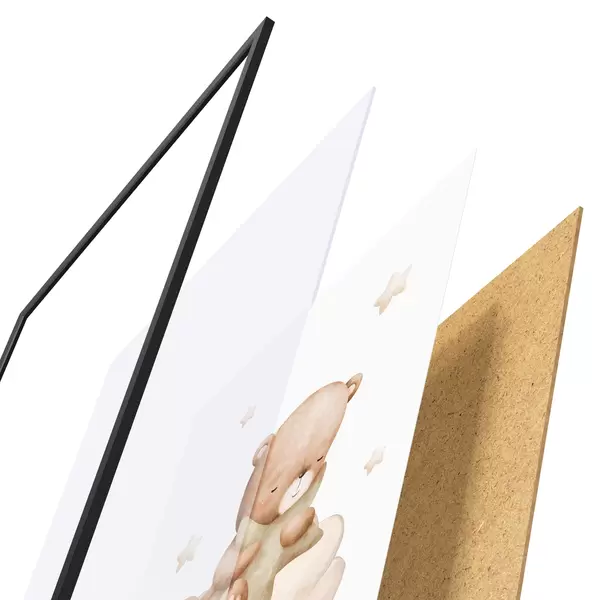 Plakāts sastāv no rāmja, pleksstikla, iespiestā attēla un skaidu plātnes pamatnes. Plakātu var uzreiz piekarināt pie sienas, pateicoties aizmugurē esošajiem stiprinājumiem.