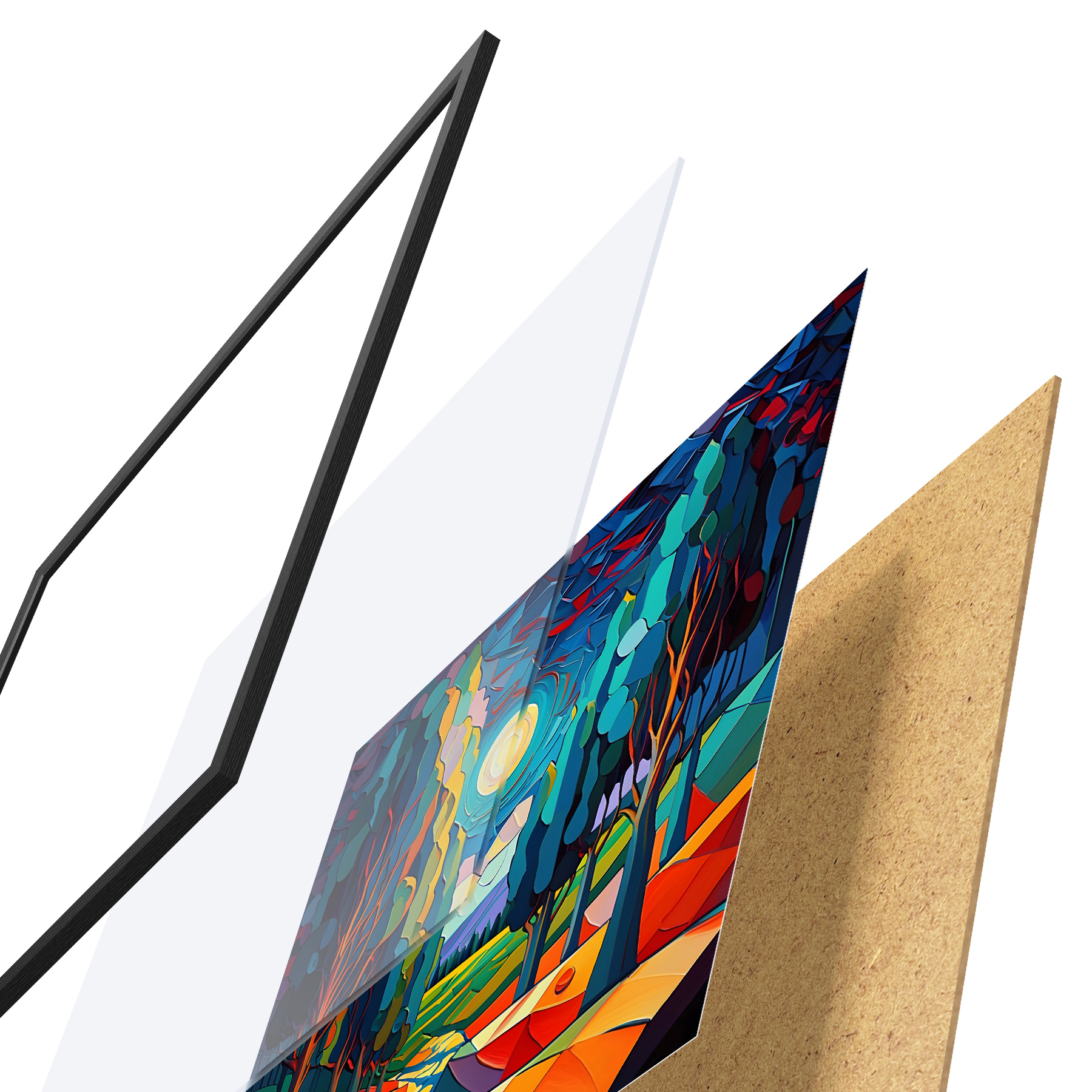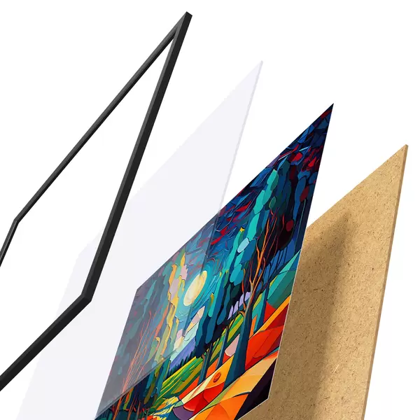 Plakāts sastāv no rāmja, pleksstikla, iespiestā attēla un skaidu plātnes pamatnes. Plakātu var uzreiz piekarināt pie sienas, pateicoties aizmugurē esošajiem stiprinājumiem.