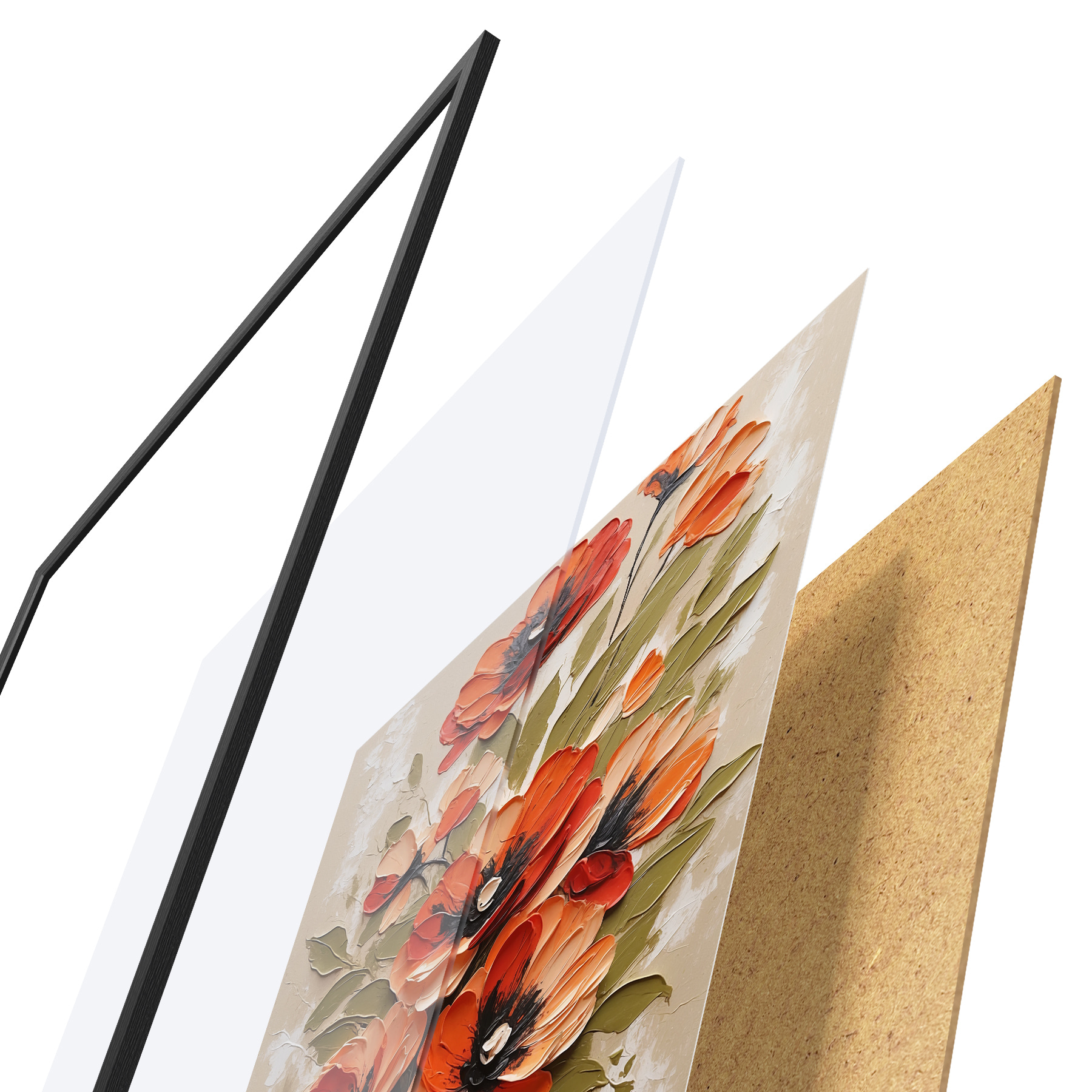 Plakāts sastāv no rāmja, pleksstikla, iespiestā attēla un skaidu plātnes pamatnes. Plakātu var uzreiz piekarināt pie sienas, pateicoties aizmugurē esošajiem stiprinājumiem.