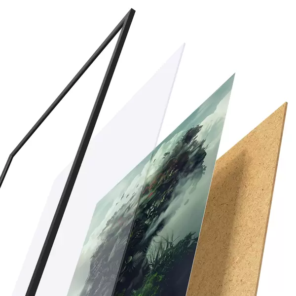 Plakāts sastāv no rāmja, pleksstikla, iespiestā attēla un skaidu plātnes pamatnes. Plakātu var uzreiz piekarināt pie sienas, pateicoties aizmugurē esošajiem stiprinājumiem.