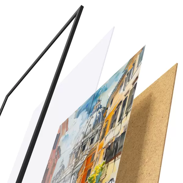 Plakāts sastāv no rāmja, pleksstikla, iespiestā attēla un skaidu plātnes pamatnes. Plakātu var uzreiz piekarināt pie sienas, pateicoties aizmugurē esošajiem stiprinājumiem.