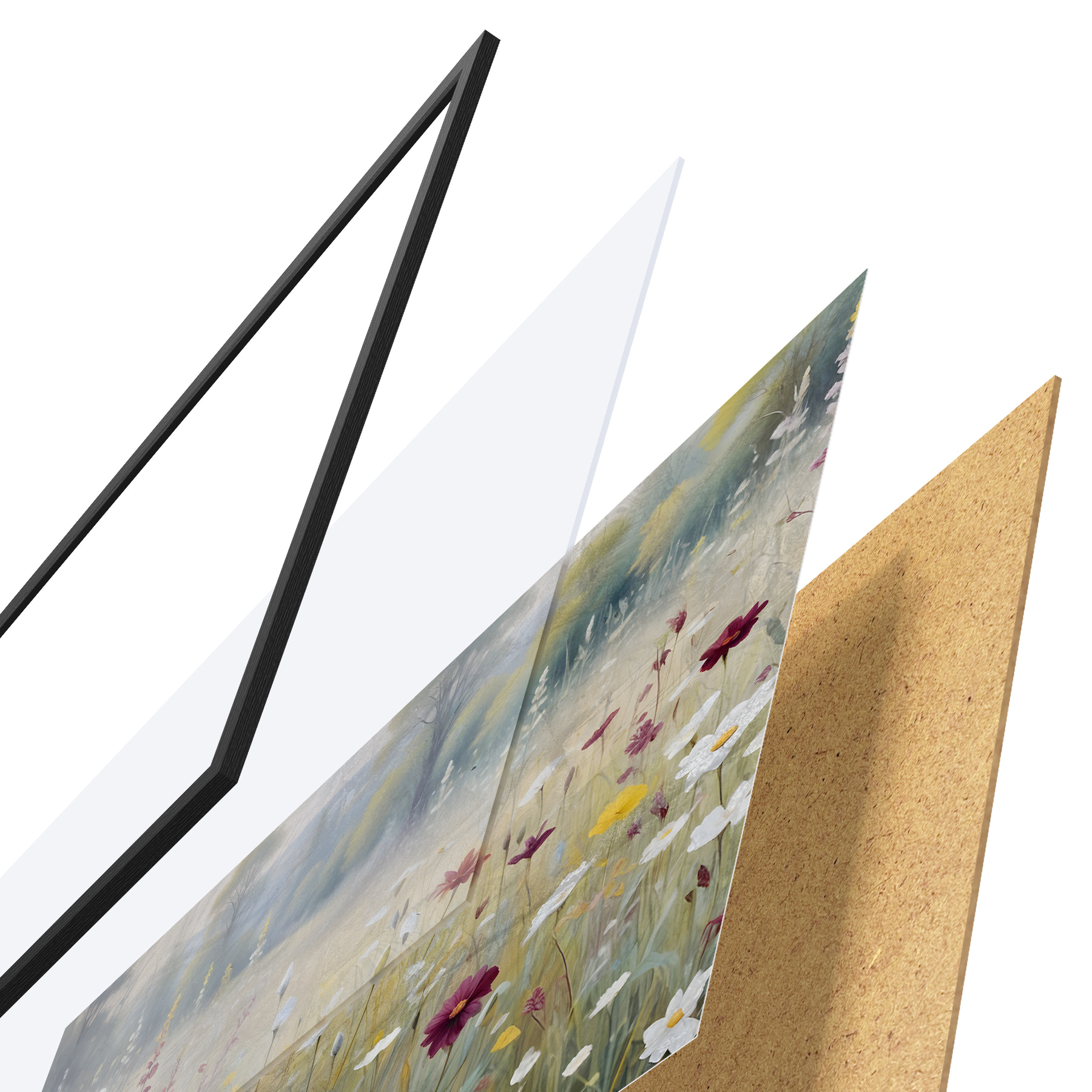 Plakāts sastāv no rāmja, pleksstikla, iespiestā attēla un skaidu plātnes pamatnes. Plakātu var uzreiz piekarināt pie sienas, pateicoties aizmugurē esošajiem stiprinājumiem.