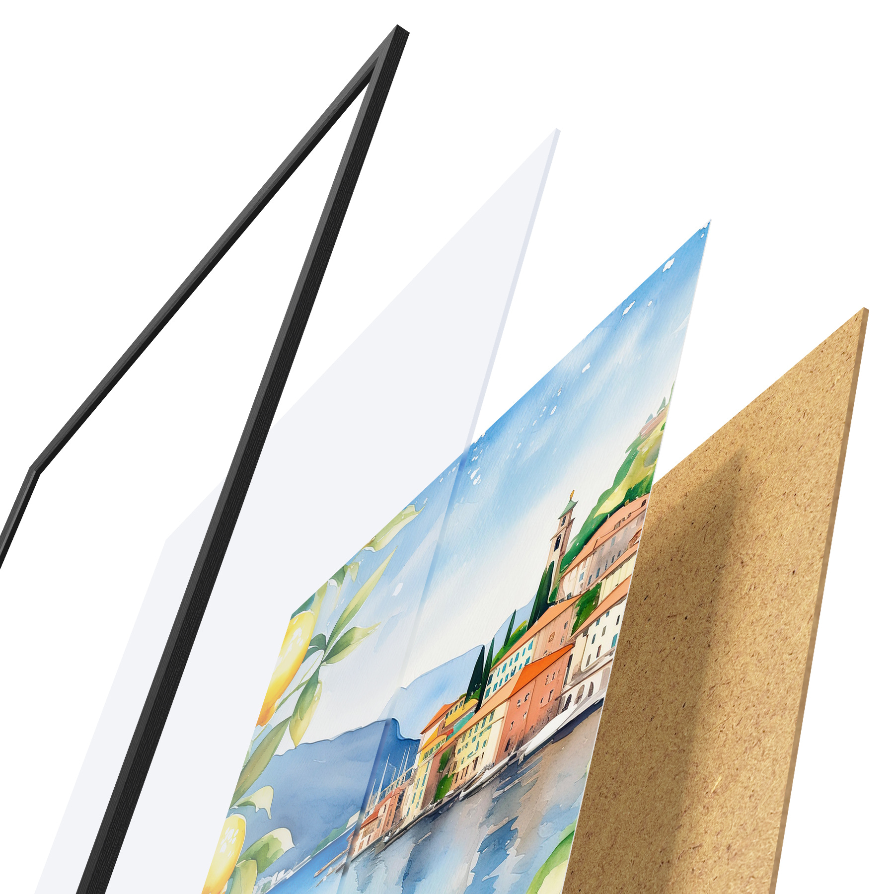 Plakāts sastāv no rāmja, pleksstikla, iespiestā attēla un skaidu plātnes pamatnes. Plakātu var uzreiz piekarināt pie sienas, pateicoties aizmugurē esošajiem stiprinājumiem.