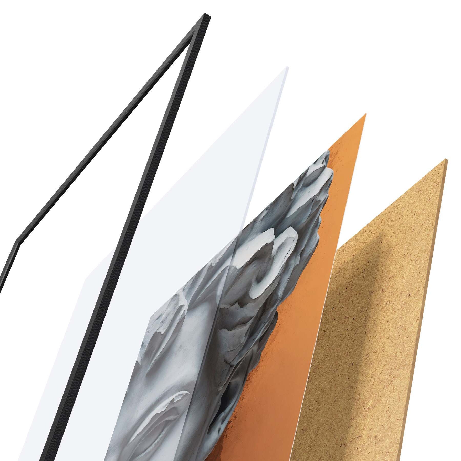Plakāts sastāv no rāmja, pleksstikla, iespiestā attēla un skaidu plātnes pamatnes. Plakātu var uzreiz piekarināt pie sienas, pateicoties aizmugurē esošajiem stiprinājumiem.