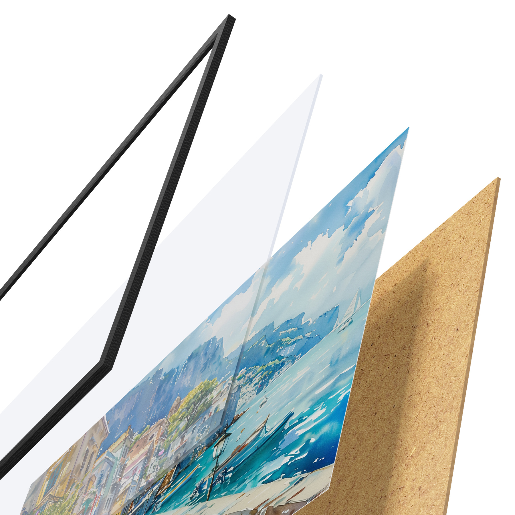Plakāts sastāv no rāmja, pleksstikla, iespiestā attēla un skaidu plātnes pamatnes. Plakātu var uzreiz piekarināt pie sienas, pateicoties aizmugurē esošajiem stiprinājumiem.