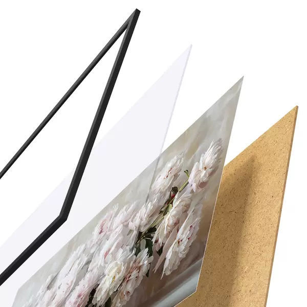 Plakāts sastāv no rāmja, pleksstikla, iespiestā attēla un skaidu plātnes pamatnes. Plakātu var uzreiz piekarināt pie sienas, pateicoties aizmugurē esošajiem stiprinājumiem.