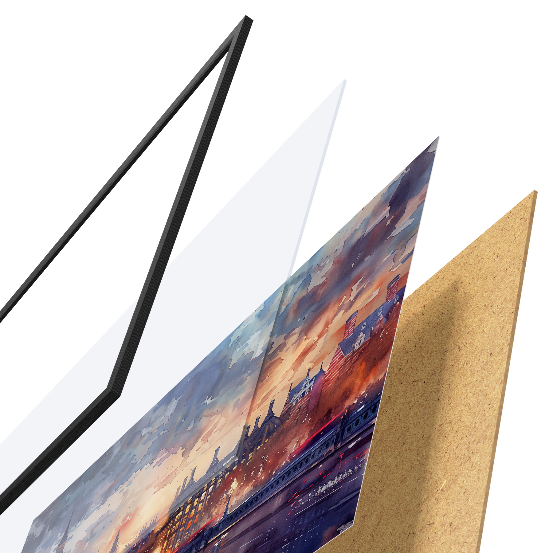 Plakāts sastāv no rāmja, pleksstikla, iespiestā attēla un skaidu plātnes pamatnes. Plakātu var uzreiz piekarināt pie sienas, pateicoties aizmugurē esošajiem stiprinājumiem.