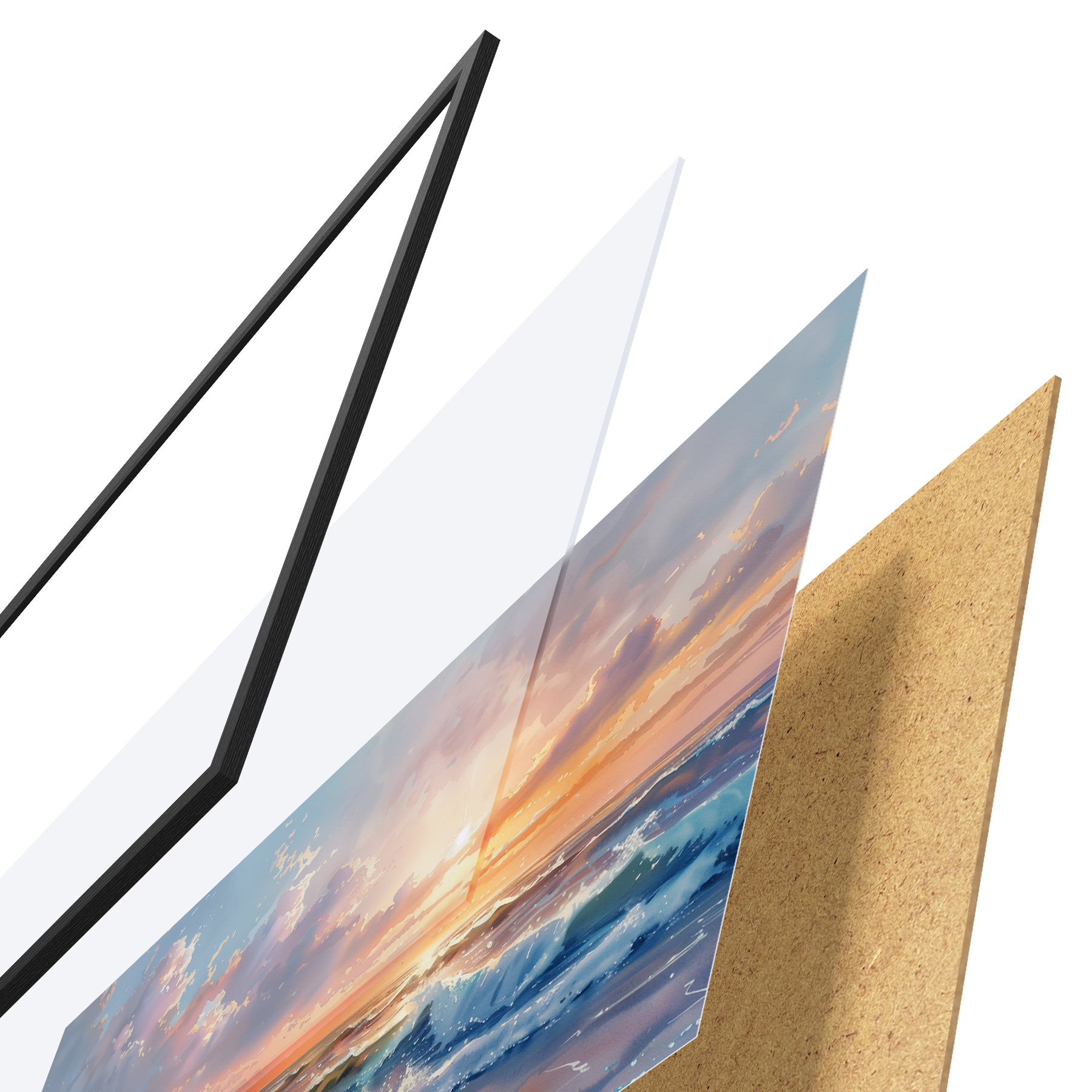 Plakāts sastāv no rāmja, pleksstikla, iespiestā attēla un skaidu plātnes pamatnes. Plakātu var uzreiz piekarināt pie sienas, pateicoties aizmugurē esošajiem stiprinājumiem.