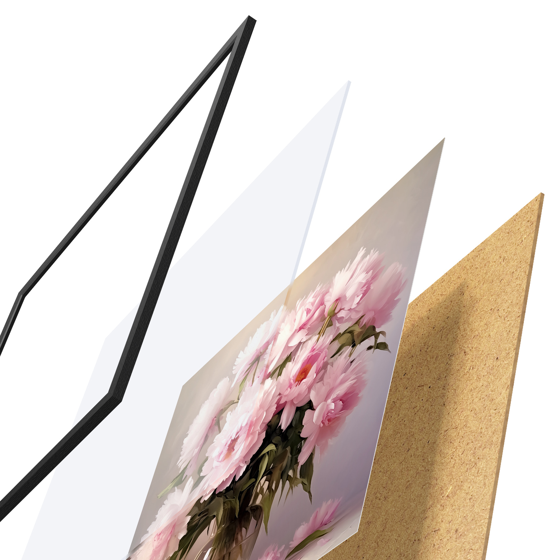 Plakāts sastāv no rāmja, pleksstikla, iespiestā attēla un skaidu plātnes pamatnes. Plakātu var uzreiz piekarināt pie sienas, pateicoties aizmugurē esošajiem stiprinājumiem.