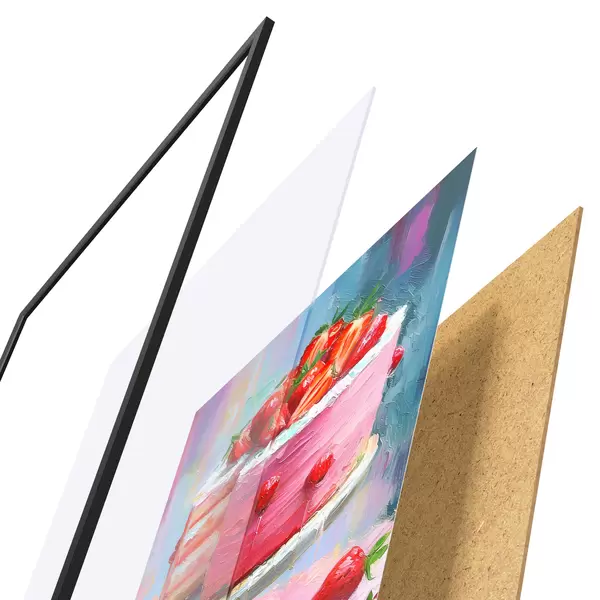 Plakāts sastāv no rāmja, pleksstikla, iespiestā attēla un skaidu plātnes pamatnes. Plakātu var uzreiz piekarināt pie sienas, pateicoties aizmugurē esošajiem stiprinājumiem.