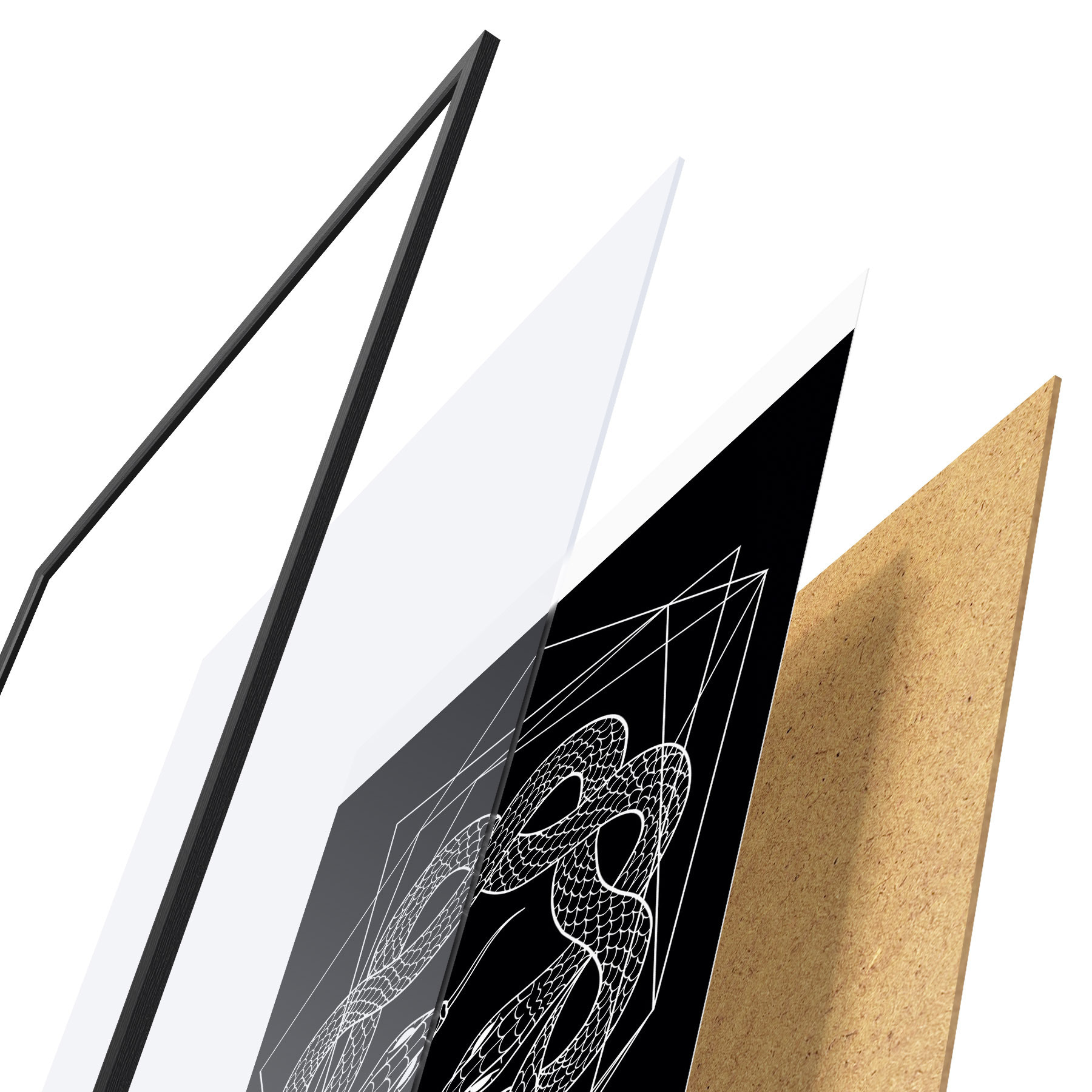 Plakāts sastāv no rāmja, pleksstikla, iespiestā attēla un skaidu plātnes pamatnes. Plakātu var uzreiz piekarināt pie sienas, pateicoties aizmugurē esošajiem stiprinājumiem.