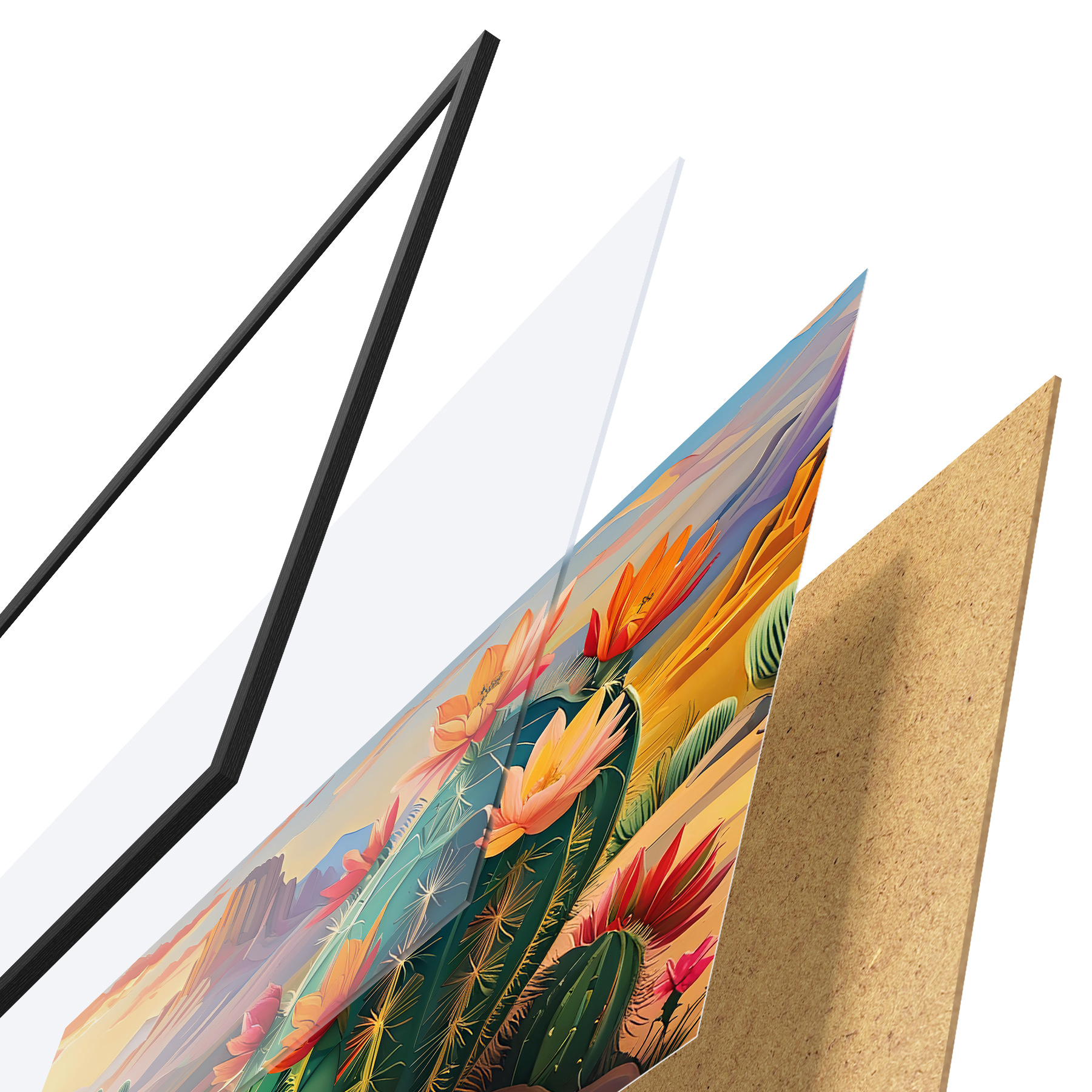 Plakāts sastāv no rāmja, pleksstikla, iespiestā attēla un skaidu plātnes pamatnes. Plakātu var uzreiz piekarināt pie sienas, pateicoties aizmugurē esošajiem stiprinājumiem.