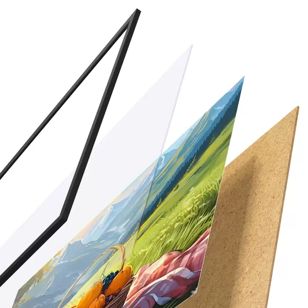 Plakāts sastāv no rāmja, pleksstikla, iespiestā attēla un skaidu plātnes pamatnes. Plakātu var uzreiz piekarināt pie sienas, pateicoties aizmugurē esošajiem stiprinājumiem.