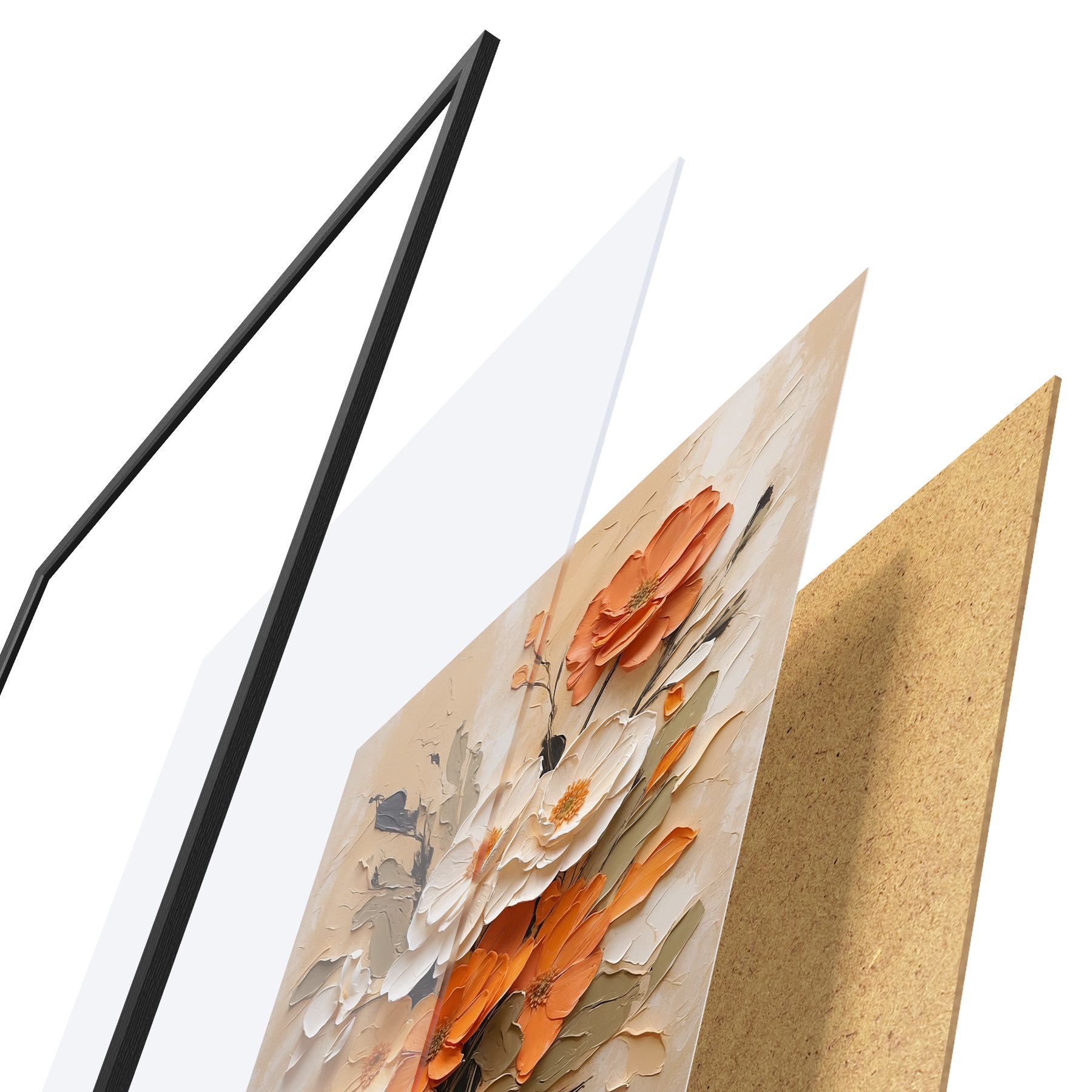 Plakāts sastāv no rāmja, pleksstikla, iespiestā attēla un skaidu plātnes pamatnes. Plakātu var uzreiz piekarināt pie sienas, pateicoties aizmugurē esošajiem stiprinājumiem.