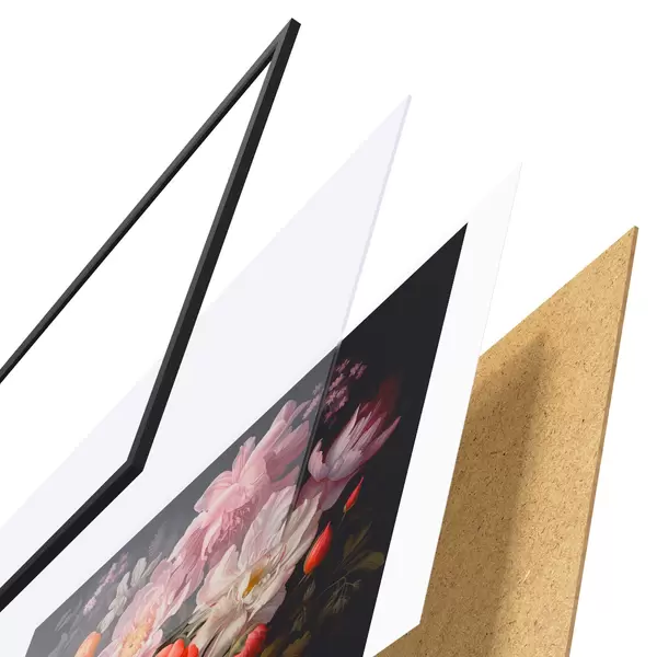 Plakāts sastāv no rāmja, pleksstikla, iespiestā attēla un skaidu plātnes pamatnes. Plakātu var uzreiz piekarināt pie sienas, pateicoties aizmugurē esošajiem stiprinājumiem.
