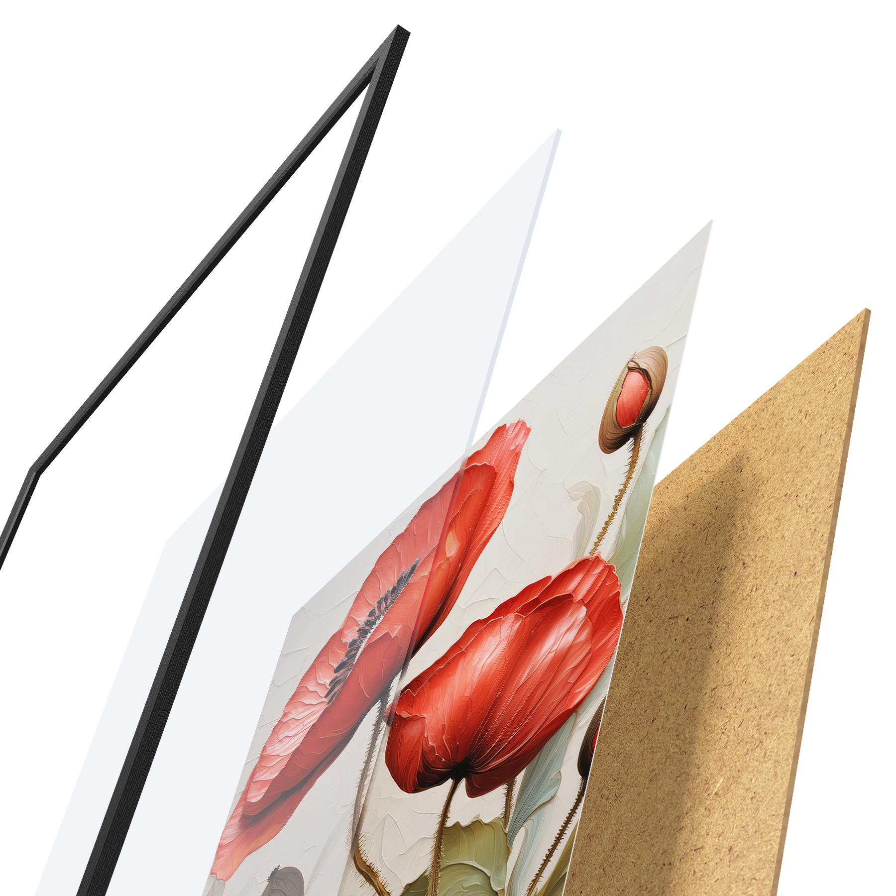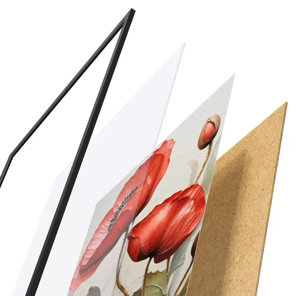 Plakāts sastāv no rāmja, pleksstikla, iespiestā attēla un skaidu plātnes pamatnes. Plakātu var uzreiz piekarināt pie sienas, pateicoties aizmugurē esošajiem stiprinājumiem.