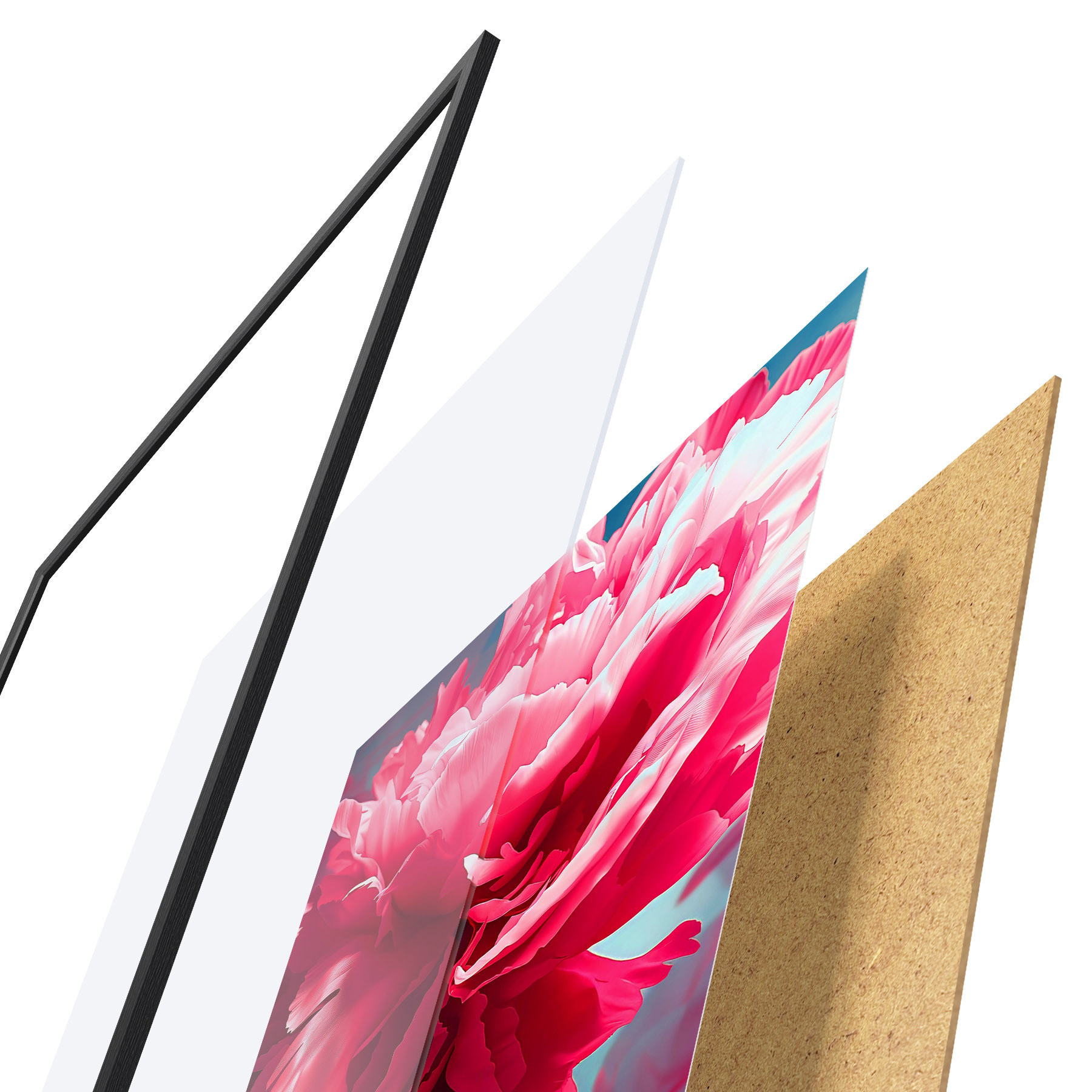 Plakāts sastāv no rāmja, pleksstikla, iespiestā attēla un skaidu plātnes pamatnes. Plakātu var uzreiz piekarināt pie sienas, pateicoties aizmugurē esošajiem stiprinājumiem.