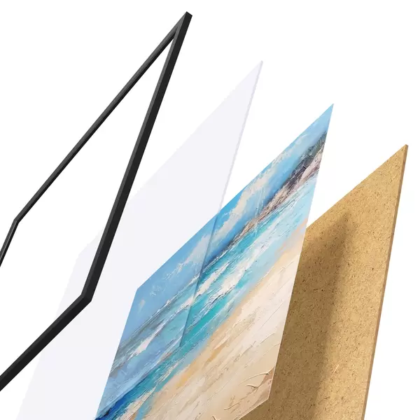 Plakāts sastāv no rāmja, pleksstikla, iespiestā attēla un skaidu plātnes pamatnes. Plakātu var uzreiz piekarināt pie sienas, pateicoties aizmugurē esošajiem stiprinājumiem.