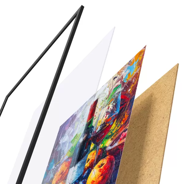 Plakāts sastāv no rāmja, pleksstikla, iespiestā attēla un skaidu plātnes pamatnes. Plakātu var uzreiz piekarināt pie sienas, pateicoties aizmugurē esošajiem stiprinājumiem.