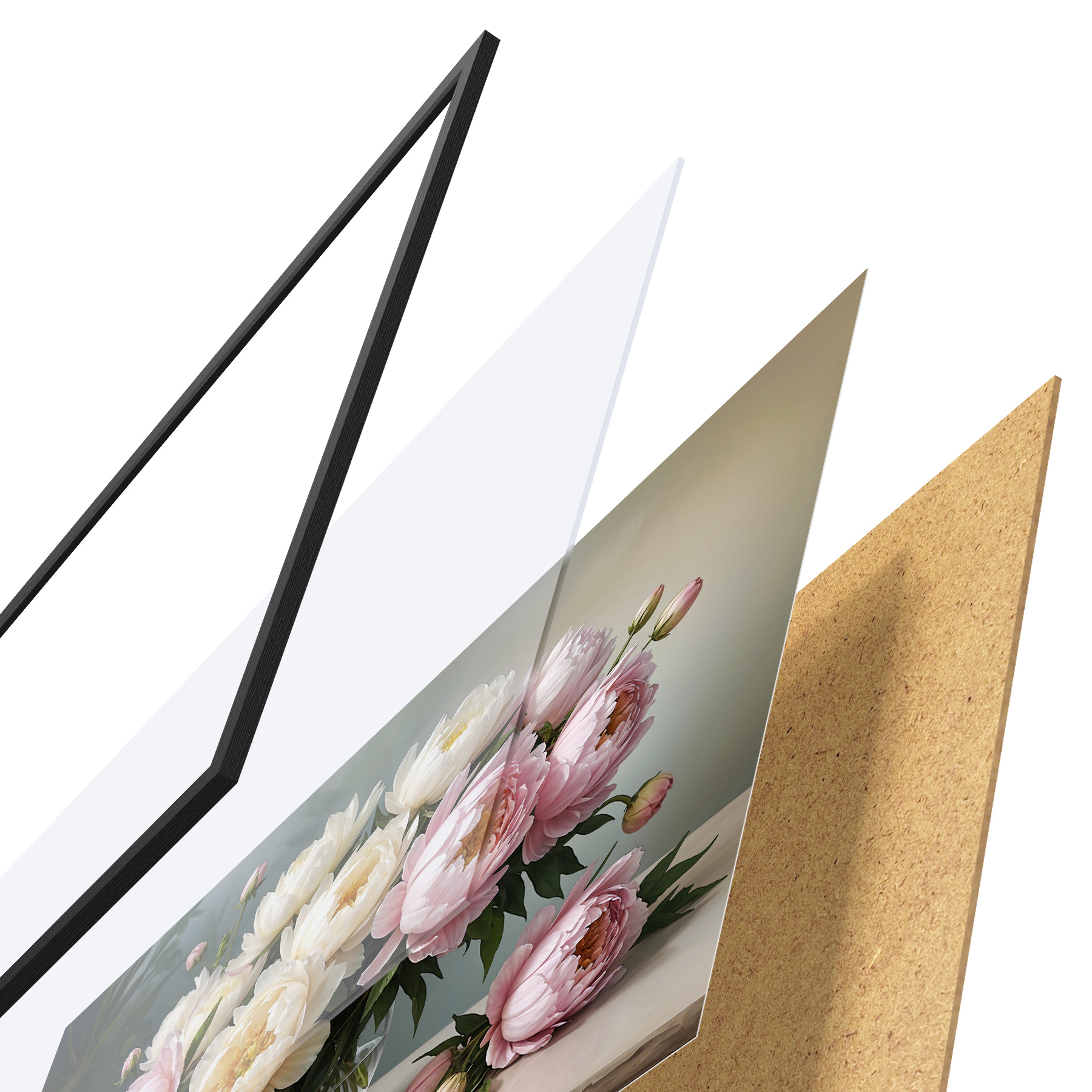 Plakāts sastāv no rāmja, pleksstikla, iespiestā attēla un skaidu plātnes pamatnes. Plakātu var uzreiz piekarināt pie sienas, pateicoties aizmugurē esošajiem stiprinājumiem.