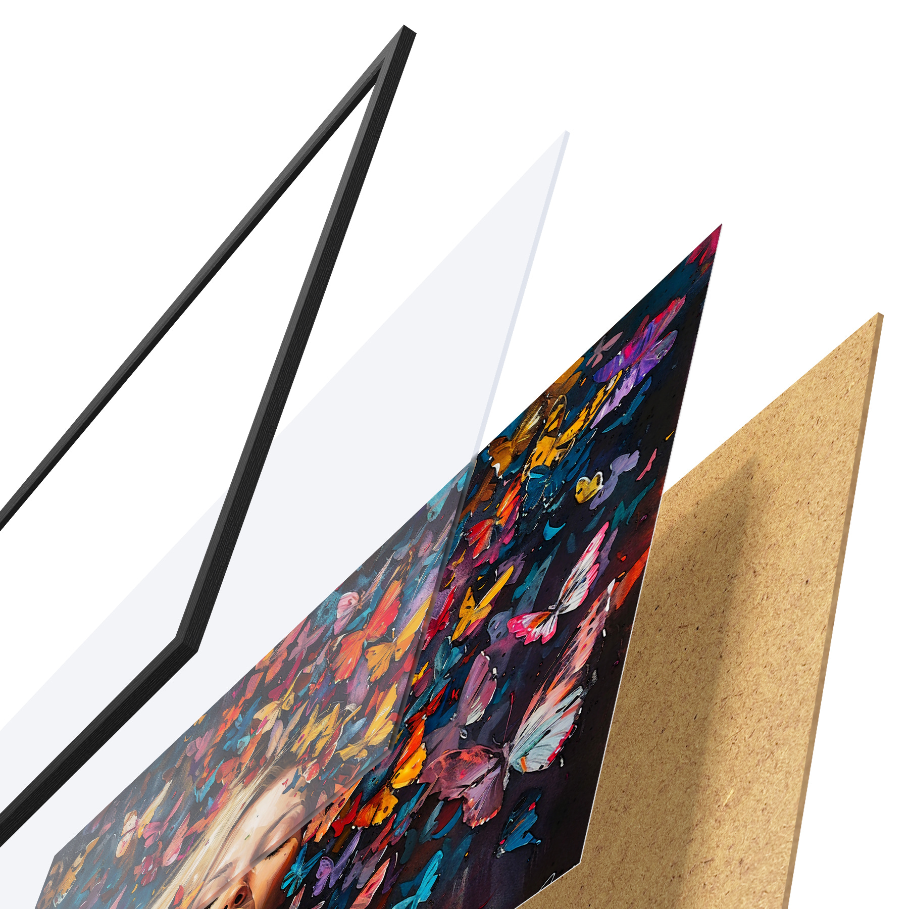 Plakāts sastāv no rāmja, pleksstikla, iespiestā attēla un skaidu plātnes pamatnes. Plakātu var uzreiz piekarināt pie sienas, pateicoties aizmugurē esošajiem stiprinājumiem.