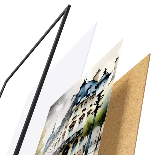 Plakāts sastāv no rāmja, pleksstikla, iespiestā attēla un skaidu plātnes pamatnes. Plakātu var uzreiz piekarināt pie sienas, pateicoties aizmugurē esošajiem stiprinājumiem.