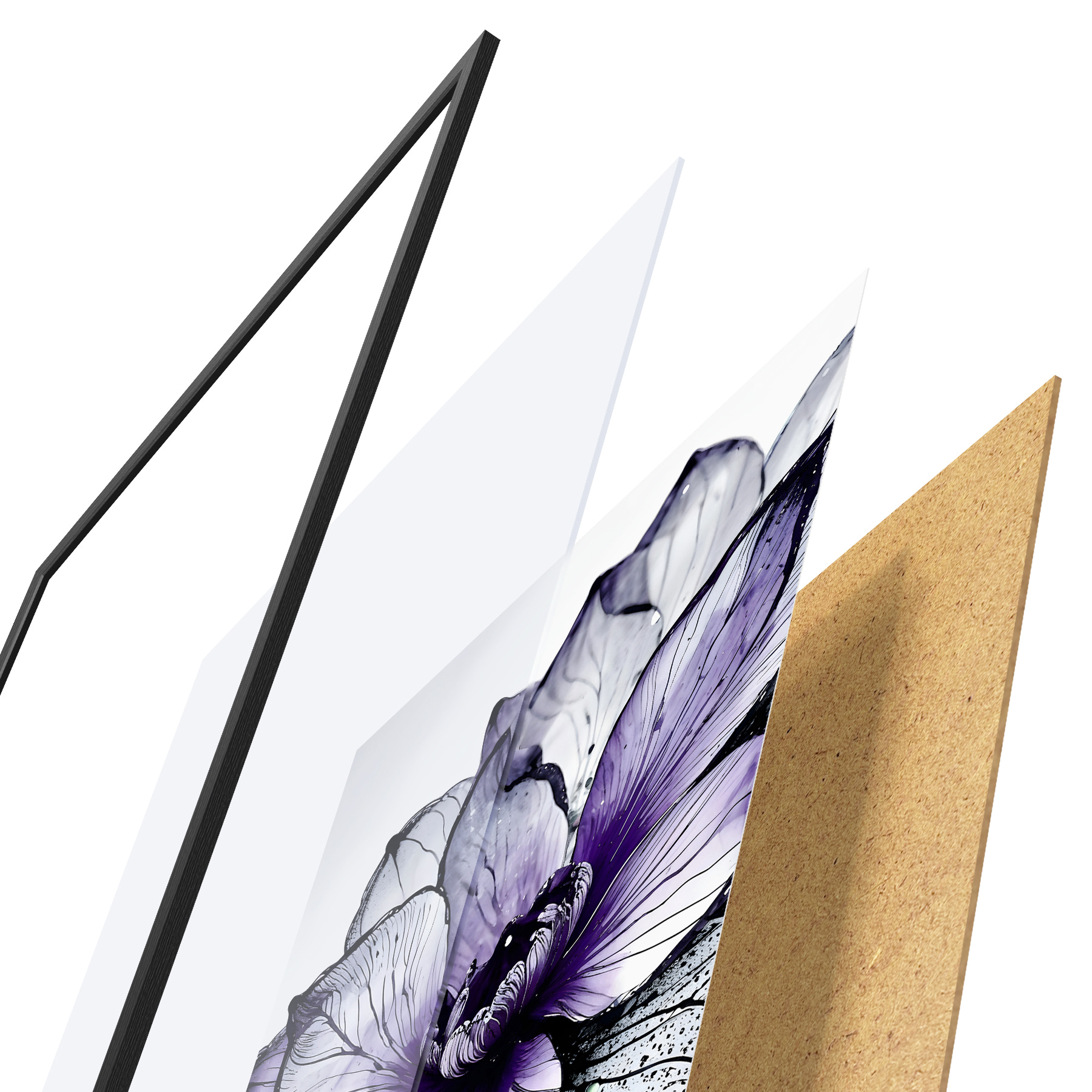 Plakāts sastāv no rāmja, pleksstikla, iespiestā attēla un skaidu plātnes pamatnes. Plakātu var uzreiz piekarināt pie sienas, pateicoties aizmugurē esošajiem stiprinājumiem.