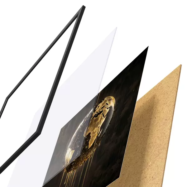 Plakāts sastāv no rāmja, pleksstikla, iespiestā attēla un skaidu plātnes pamatnes. Plakātu var uzreiz piekarināt pie sienas, pateicoties aizmugurē esošajiem stiprinājumiem.