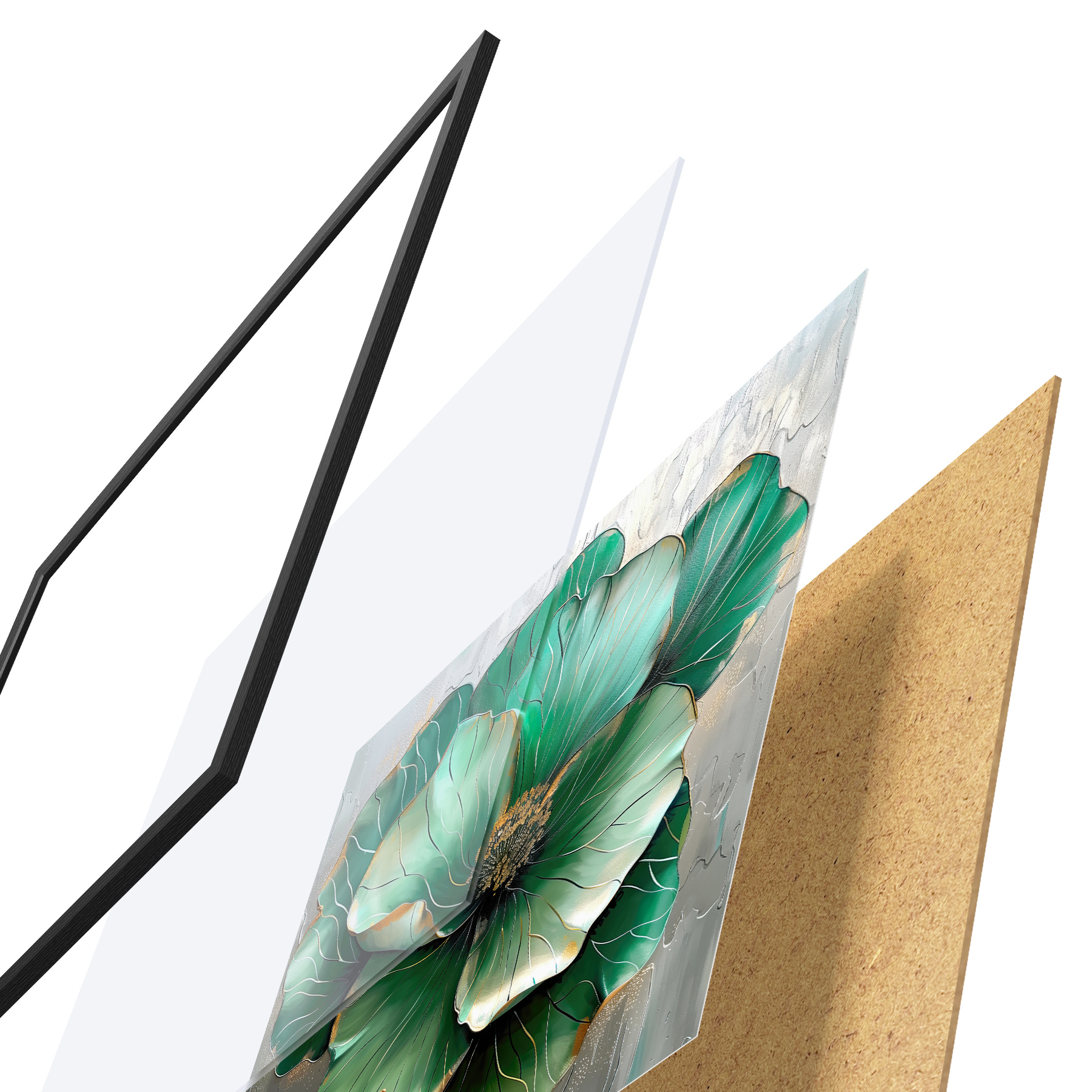 Plakāts sastāv no rāmja, pleksstikla, iespiestā attēla un skaidu plātnes pamatnes. Plakātu var uzreiz piekarināt pie sienas, pateicoties aizmugurē esošajiem stiprinājumiem.