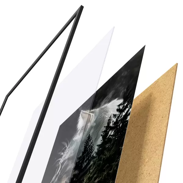 Plakāts sastāv no rāmja, pleksstikla, iespiestā attēla un skaidu plātnes pamatnes. Plakātu var uzreiz piekarināt pie sienas, pateicoties aizmugurē esošajiem stiprinājumiem.